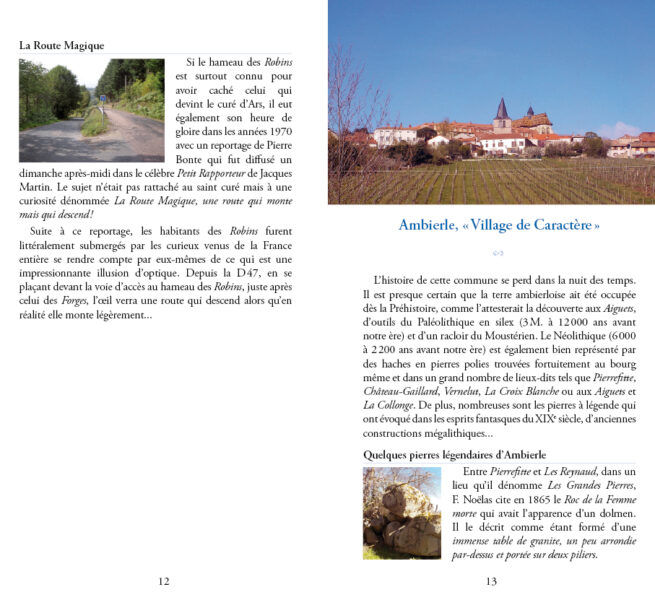 Ces nouvelles flâneries vous mèneront vers Les Noës, Ambierle, Changy, Vivans, Le Crozet, La Pacaudière, Sail-les-Bains, Urbise, Saint-Martin-d’Estréaux, Saint-Germain-Lespinasse, Saint-Romain-la-Motte, Noailly et enfin Mably. Vous serez peut-être surpris, sûrement étonnés et forcément charmés par la qualité du patrimoine local que Philippe Marconnet partage avec vous dans cette nouvelle « Itinérance » en Roannais.